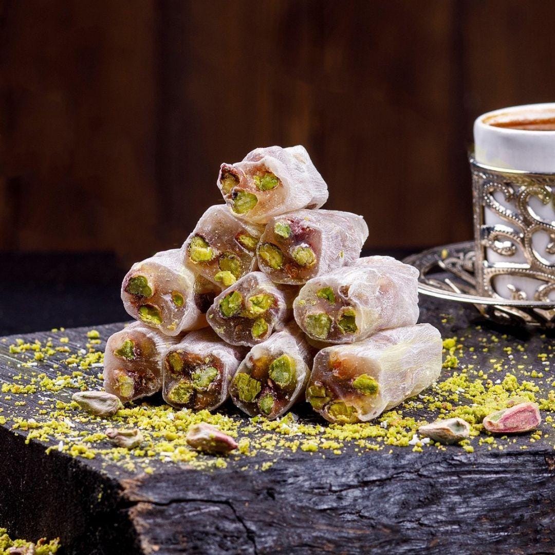 Experience the exquisite simplicity of our Premium Pistachio Turkish Delight Roll, known as Fitil Lokum. Crafted by hand using the finest pistachios and traditional recipes, this smooth and chewy treat delivers a perfect harmony of rich nutty flavor and delicate sweetness.
